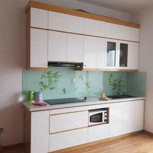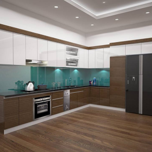 – Bề mặt tủ bếp gỗ công nghiệp phủ vân gỗ và màu chống xước, hậu tủ Aluminium chống nước bền đẹp.