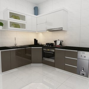 Tủ bếp Melamine cánh Acrylic bóng gương màu ghi sang trọng