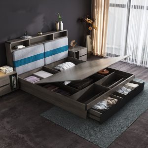 Giường làm bằng gỗ Melamine vân gỗ làm nổi bật căn phòng
